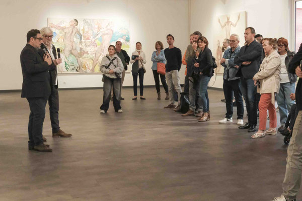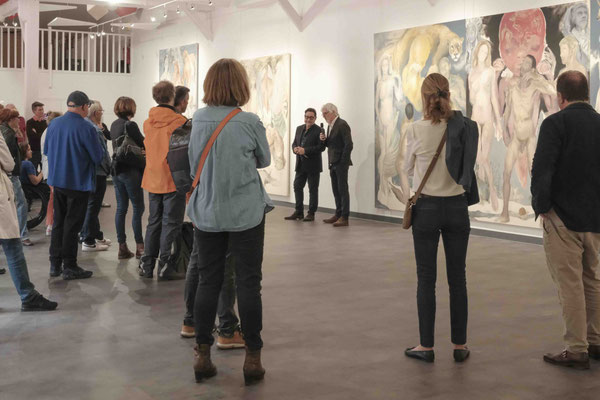 Preparing this exhibition, I had the privilege to work well in advance with the town committee in order to comply with the rigorous artistic approach generally required for painting, while conceiving of a curatorial approach addressing various audiences. Upon the first studio visit, we selected the works that could potentially be exhibited at 148 and it quickly became clear that we could stage three or four exhibitions, different from one another. We therefore had to make a choice and leave out a great number of paintings to have a coherent theme, which would also be echoed by the contributors’ essays for the catalogue. The present exhibition was thus built based on two major sequences to be experienced by the audience.