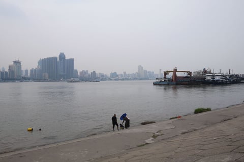 "The second photograph was taken on a Sunday afternoon, in the centre of town, along the Yangzi Jiang river. The light is a little heavy in an atmosphere both sunny and grey, the uninterrupted traffic of boats animating the surface of the water. However, these movements are hardly visible from the banks so large is the river and immense the panorama. In the distance a few buoys, they are swimmers. One of them returns to the shore, where a child and two adults are standing, probably the parents. Again, I was impressed by this Chinese dimension, in which the very tall and the individual collide, solitary or in small groups, and hardly standing ou in this excess, that we feel is such because it is so different from our usual scale. Yet, there again, simultaneously and to my astonishment, I had a feeling of belonging by sliding among the townspeople who had come to enjoy this moment of peace very strongly perceptible. I therefore decided to shoot a few pictures. And the one illustrating my point in this article can evoke this View of Delft by Vermeer that I had presented a few days ago to the Chinese students of an architecture school in that same city of Wuhan."